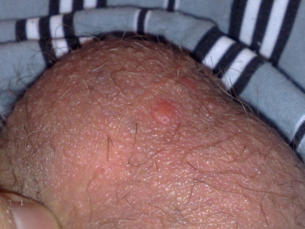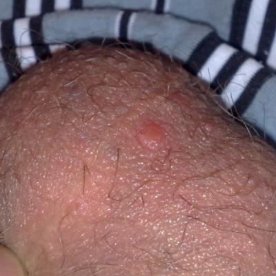 Здравствуйте,уже недели 2 как на мошонке появились прыщики штук 5,иногда чешутся,а 5 дней назад заметил небольшой прыщик на члене(прям на стволе)но он не чешется и не беспокоит,вот волнуюсь.хотел бы знать что это?Ниже прикрепил фотки,заранее спасибо!