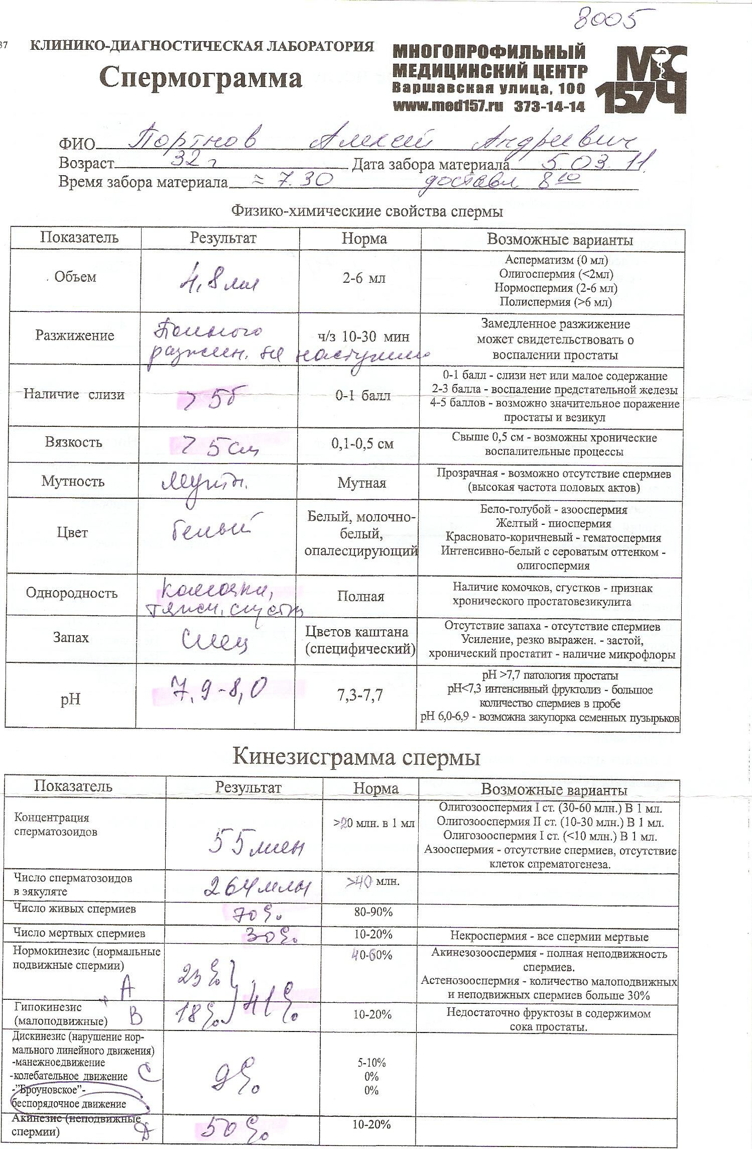 Спермограммы, бесплодие