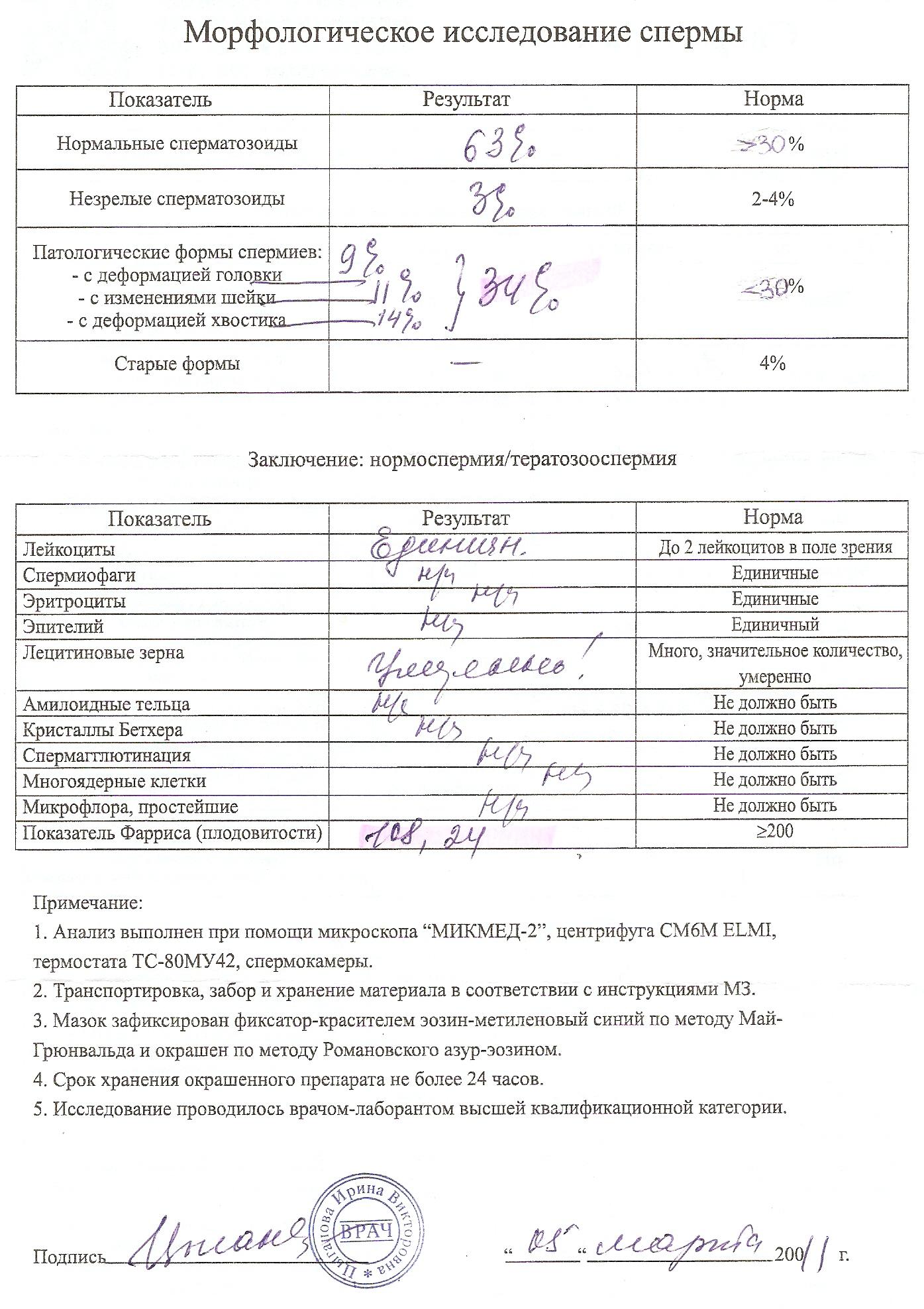 возможность беременности по результатам спермограммы