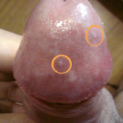 Белое пятно на головке члена и прыщи