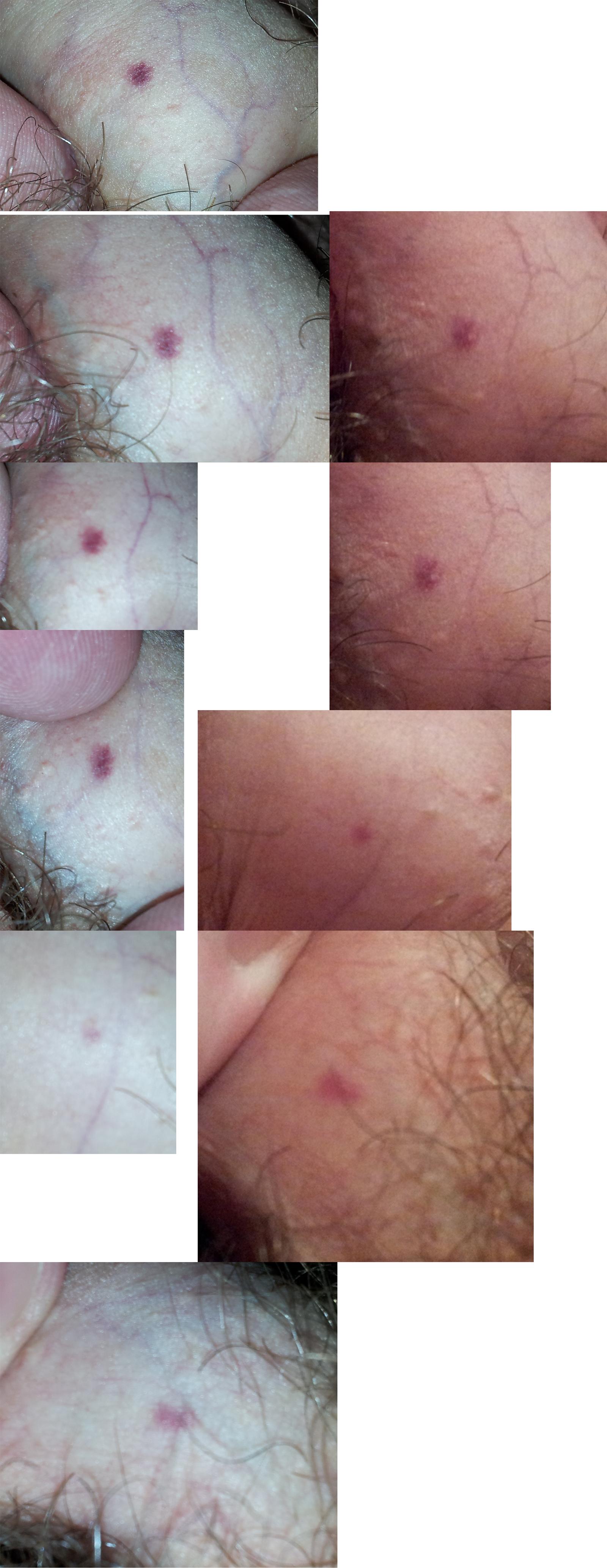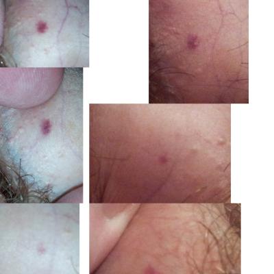 Недавно заметил, что на коже ствола члена появилось 3 темно-красных пятнышка в разных местах. Одно, самое крупное, с левой стороны чуть ниже головки, второе поменьше у основания сверху, и третье совсем маленькое с правой стороны ниже головки. На головке изменений нет, на крайней плоти тоже (т. к. самой плоти нет - я обрезанный).