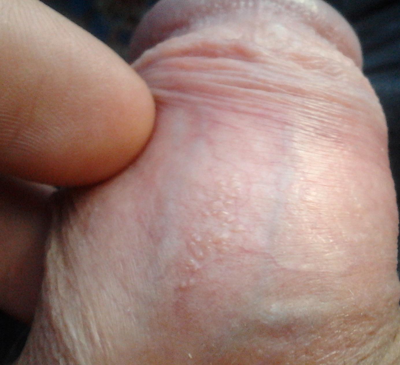 Пузырьки на коже члена. Что это? вообще не беспокоит.. К кому обращаться? и можно ли вылечить в домашних условиях?