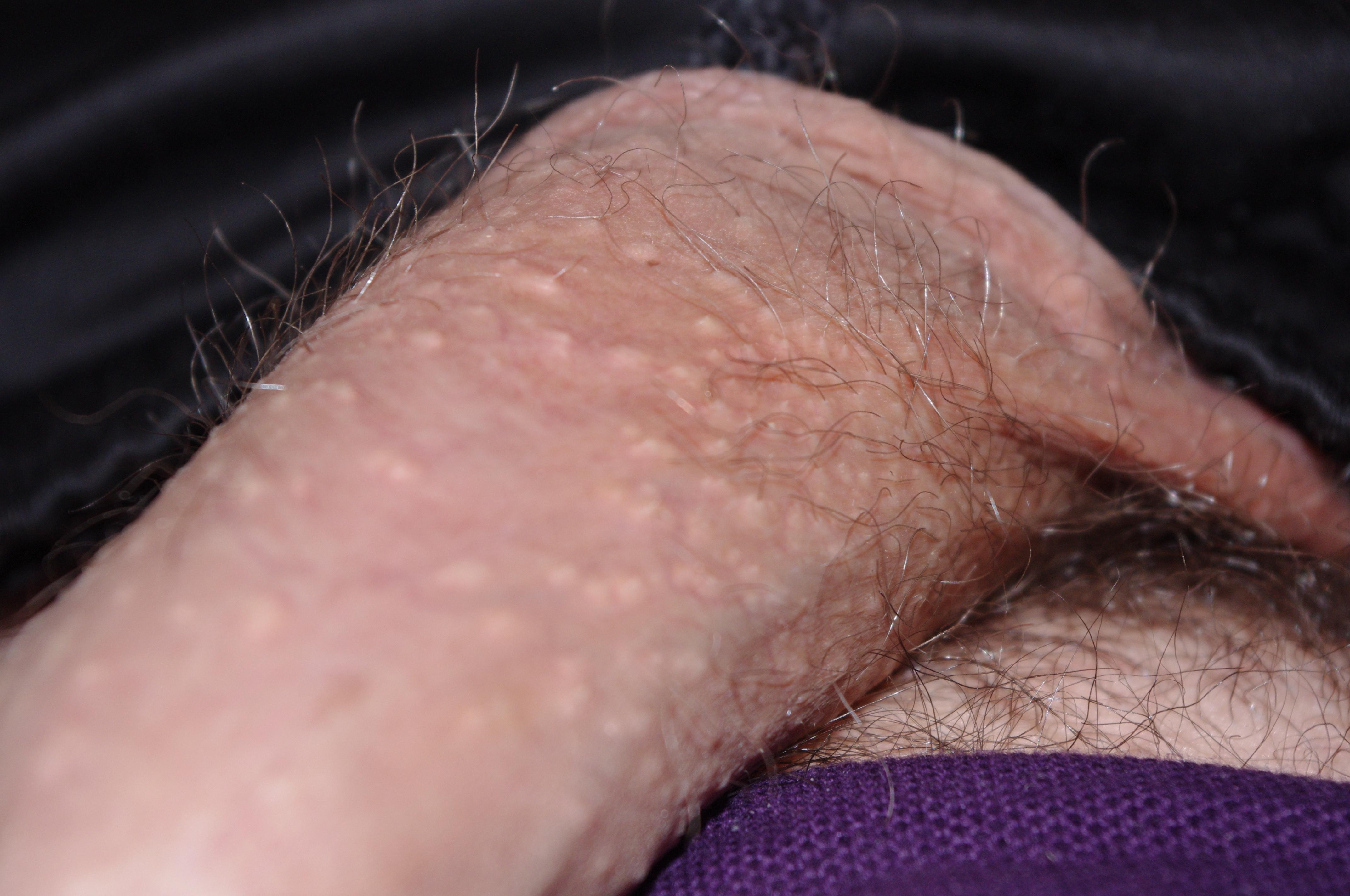 Ув. доктора, с 13-14 лет на коже полового члена появились "жировики"(определил сам), хотя это может быть гранулы Фордайса. Высылаю фото, помогите определить,что это и как с этим бороться. Боли не приносят, но психологически давят на меня :)Так же мой член немного "косит влево". Это как то связано? Надеюсь на Вашу профессиональную помощь.