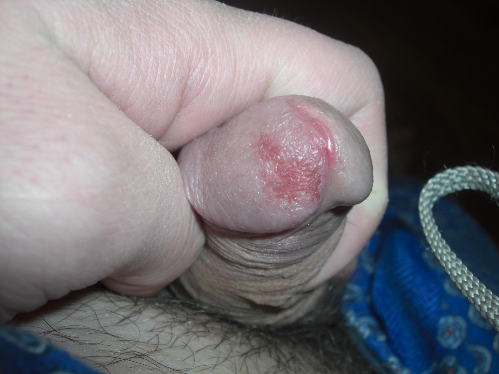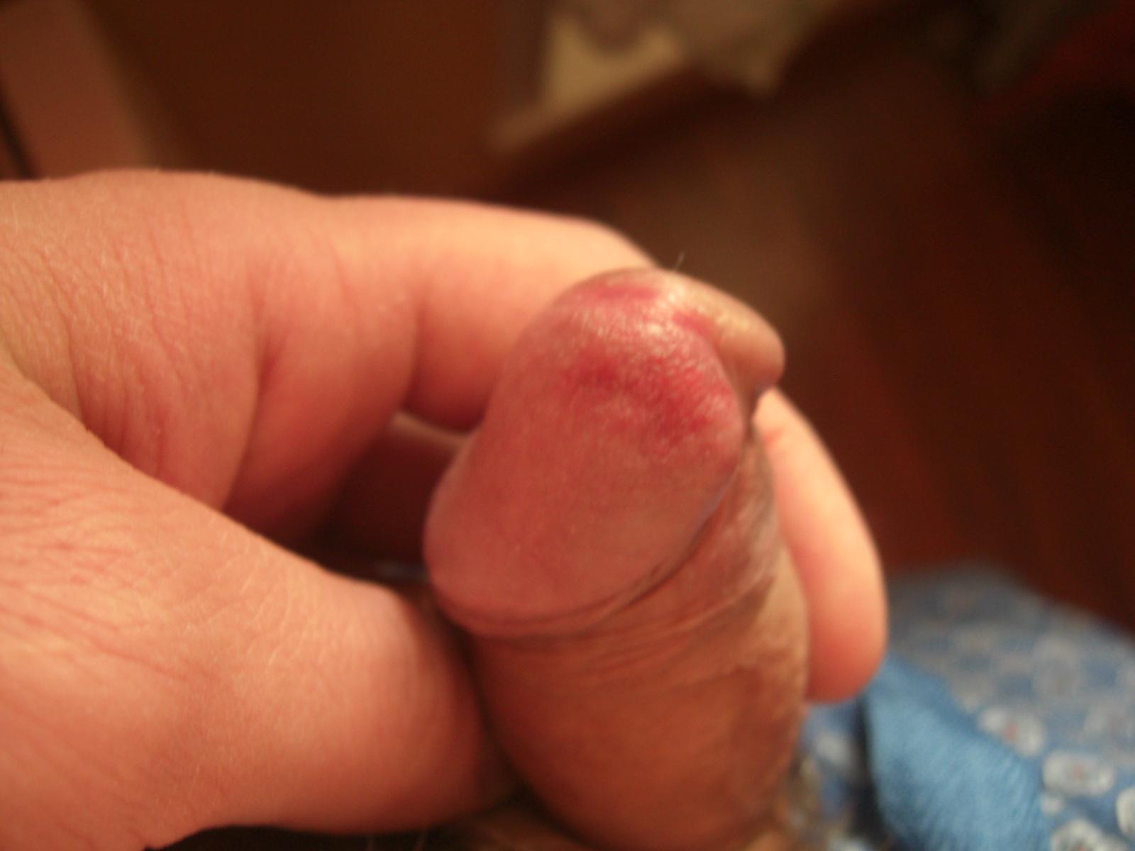 Тёмное пятно на головке члена.