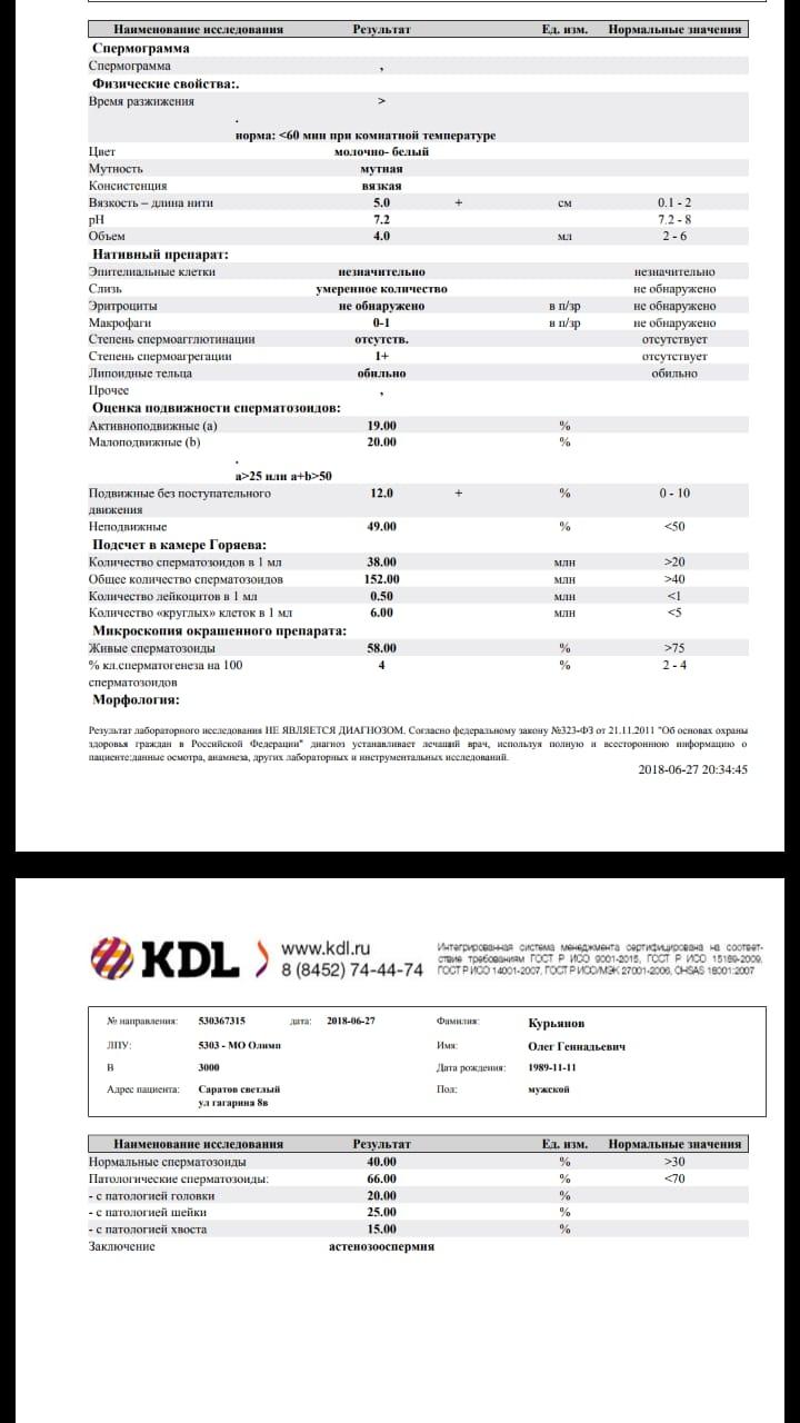 Сделал спермограмму. Проконсультируйте с лечением