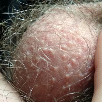 Что ето может быть? Заметил относительно недавно. Сыпь охватила немного полового члена.