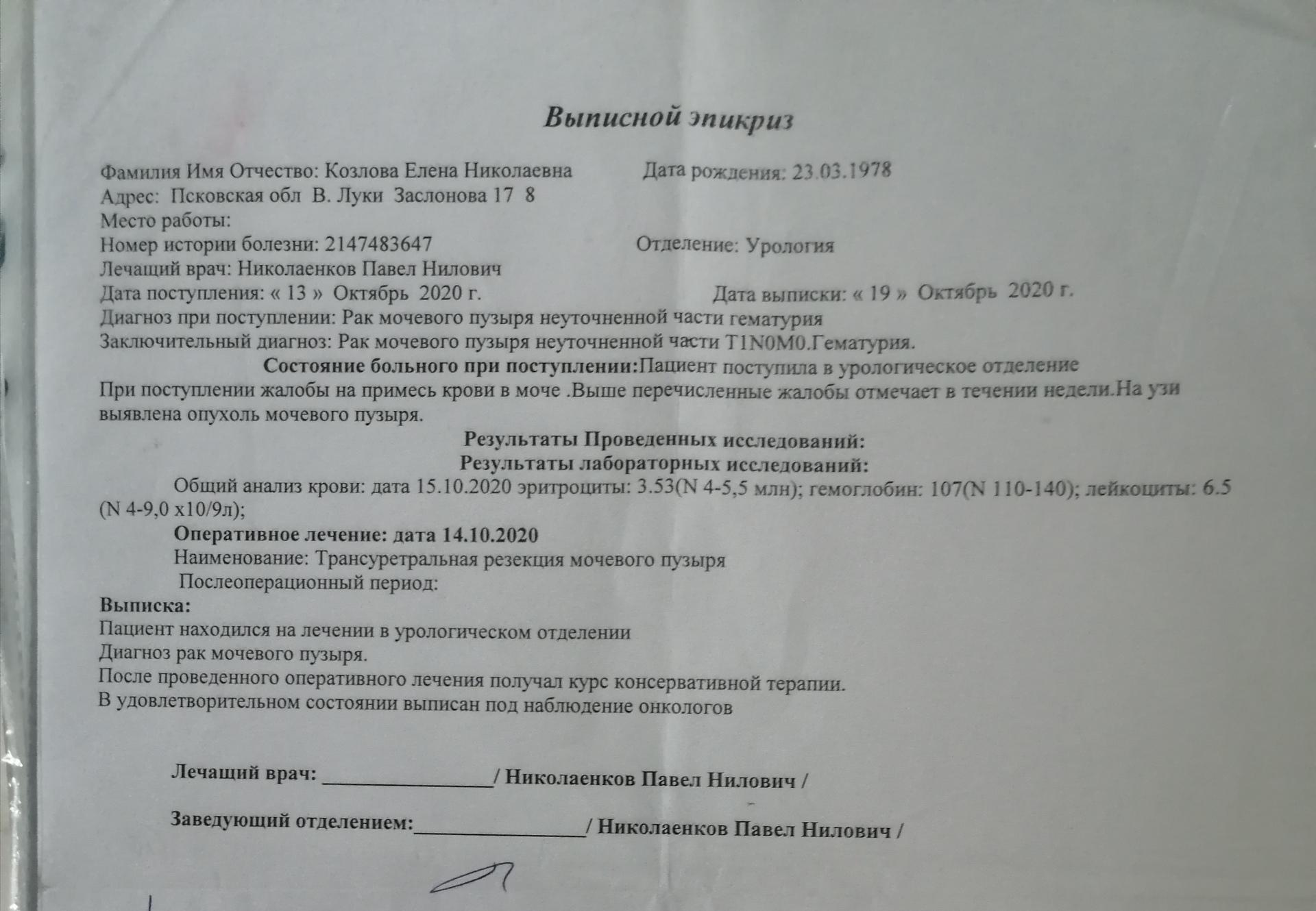 Здравствуйте. У меня обнаружили опухоль мочевого пузыря, 14.10.2020г была проведена ТУР мочевого пузыря, опухоль удалили. Через 3 месяца будет снова УЗИ, цитоскопия. Стоит ли мне обратиться в НМИЦ онкологическии в г. Санкт-Петербург до истечения данного срока, или просто ждать, вырастит ли опухоль снова в этом же месте, или в другом?