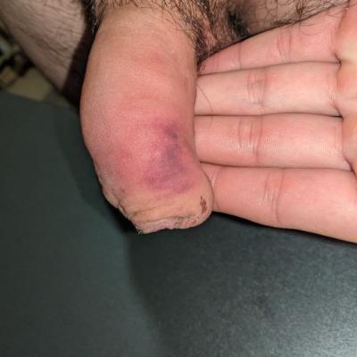 Здравствуйте! Обязательно сделайте УЗИ полового члена. Соблюдайте половой покой. С результатами УЗИ - покажитесь урологу очно.