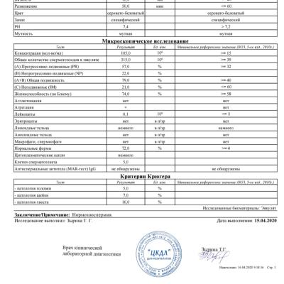 Здравствуйте! По результатам представленной спермограммы - показатели - в пределах референсных значений. Для улучшения спермограммы и увеличения вероятности наступления беременности, можно рекомендовать курсовой приём комплекса Мираксант. Попытки забеременеть можно продолжать во время приёма этого препарата. Удачи!