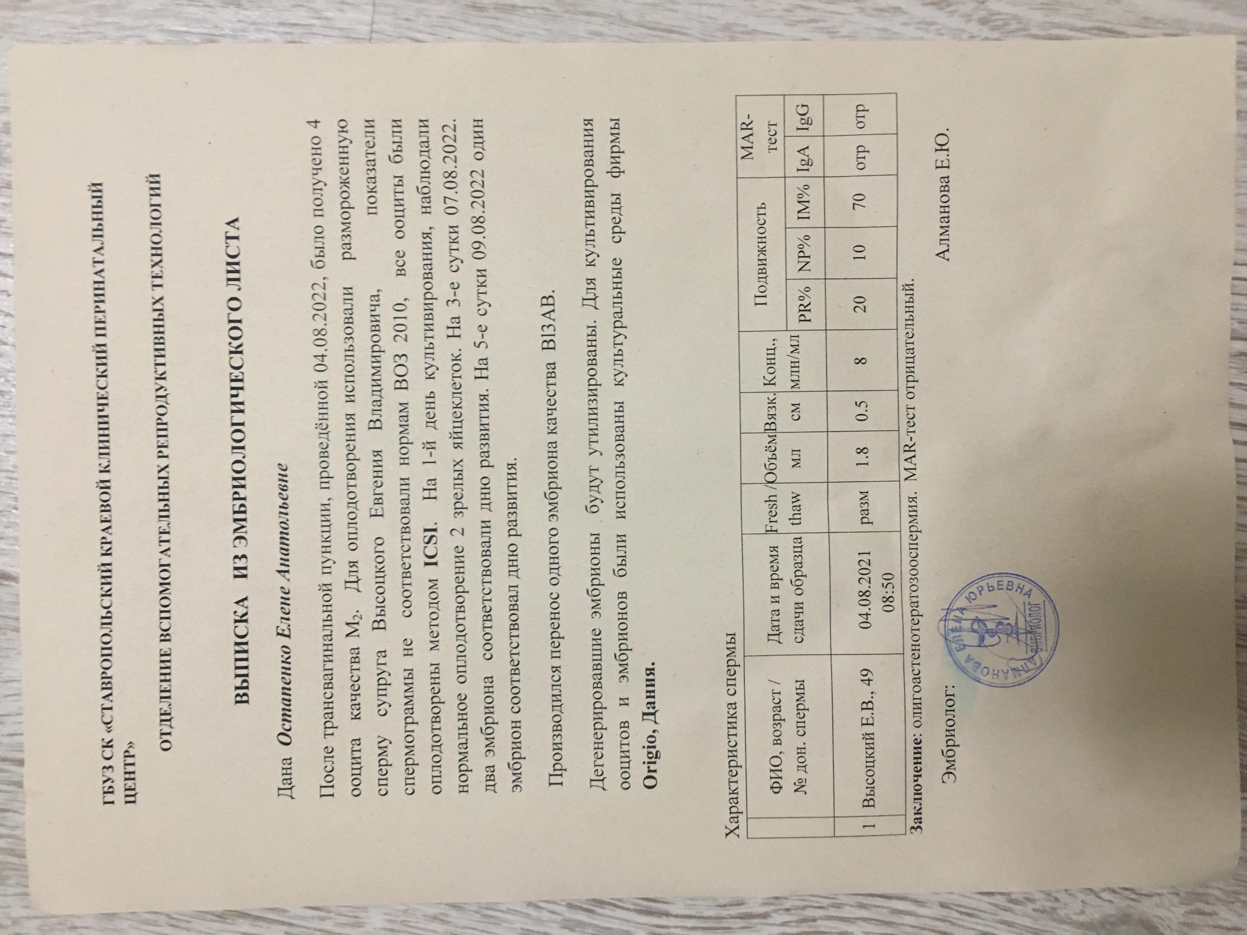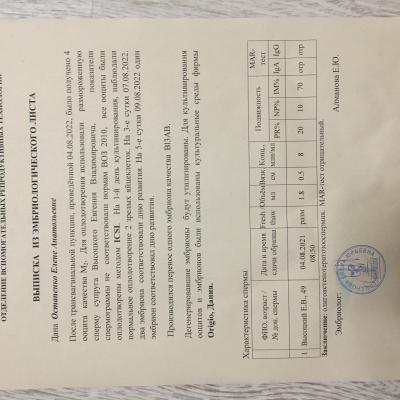 Добрый день ! Меня зовут Елена мне 38 лет . В мае 2020 году у меня была замершая беременность на сроке 13 недель , беременность наступила быстро и естественном путём ! До этого беременности и абортов не было ! Замерший плод чистили медикаментозно . На тот момент мне было 36 лет , мужу 47 . Осенью 2020 муж сильно переболел covid. С февраля 2021 пыталась беременеть , высчитывала дни , делала узи на овуляцию , ничего не получалось . В ноябре 2021 было эко -икси по мужскому фактору , но пролет ! В феврале криоперенос-пролет, в мае -криоперенос тоже пролет . В июле 2022 было второе эко-икси , получился всего 1 эмбрион , но тоже пролет . Мужу ставят олигоастенотератозоаспермию . Подскажите пожалуйста есть ли у меня шанс на зачатие,беременность и рождение здорового ребенка после лечения мужа , ведь мне уже 38 , мужу 49 . Я здорова , но понимаю что возраст, и мои клетки тоже стареют . Может не стоит терять время и идти на донора (муж против, но желание стать мамой в приоритете )