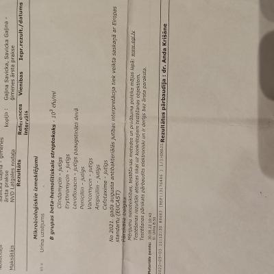Здравствуйте. Посоветуйте пожалуйста тактику лечения. Циститы посткоитальны (е коли) возникали и ранее, всегда спасал фурамаг. Потом перестал помогать, пила антибиотики по посеву. 5 лет назад после рецидива долго беспокоили остаточные явления, либо это было вяло текущее воспаление, не знаю. Но острая стадия снималась антибиотиками. Потом все наладилось. 2 года все было хорошо, и вот опять обострение после ПА. Воспаление началось 22 августа, развивалось постепенно, я даже не сразу поняла что это цистит, первично пошла к гинекологу из-за боли внизу живота. По гинекологии все ок. В моче бактерии, высеился стрептококк 10в 3. Чувствительность была к Cefotaxime. Врач выписал мне цефуроксим, та же группа только 2 поколение. Не знаю верно или нет, потому что другой врач сказал что это немного другой все таки препарат. Я пила как назначили, 7 дней. Через 2 дня после окончания курса была на консультации у уролога. Поскольку остались жалобы, было сказано пить еще 3 дня, итого 10 дней. Несколько дней чувствовала себя хорошо, но низ живота иногда потягивало. Потом стало хуже, опять боли, раздражение в мочевом, желание мочиться, отсутствие облегчения после мочеиспускания. Все началось заново. Я старалась вытерпеть 2 недели после антибиотиков чтобы сдать посев. В итоге сдала на 13 день, было совсем плохо. Через два дня из-за плохого самочувствия врач назначила мне другой антибиотик, который был чувствит. по первому анализу -клиндамицин 12 дней. Я начала принимать, сразу было облегчение. А через пару дней пришел результат посева, чисто, ничего не выросло. На четвертый день приема антибиотиков живот стал болеть еще больше, ходила и стонала, было ощущение что в мочевом пузыре хлорка, не могла сидеть. Пила обезбаливающие. В итоге пропила клиндамицин все 12 дней, на 9-10 день все как-будто прошло, но в последние дни антибиотиков все равно чувствовался дискомфорт. Я надеялась что это остаточные явления, которые сойдут на нет, продолжала растительные препараты. К слову сказать много чего пила, изначально травяной сбор, канефрон, фитолизин, пробиотики Потом заказала маннозу, клюкву, монолаурин. Пью много воды, поддерживаю кишечник как могу, (пищеварительная система и так слабая - ГЭРБ), но второй курс антибиотиков получается был напрасным. Как убить бактерию? И какая там теперь бактерия? Мучиться и пытаться продолжать сдавать посевы, что делать? Или это стрептококк такой живучий. Лейкоциты кстати не увеличены, и 2 года назад тоже так было, только эритроциты увеличиваются. Это означает что организм не борется с бактерией?? Я очень устала, помогите, не знаю что делать. Третий курс антибиотиков боюсь не осилю. Прикладываю фото результатов анализов, jutīgs на латышском - чувствителен, остальное думаю разберетесь. Ответьте мне пожалуйста, у нас в городе нет таких продвинутых врачей как вы.