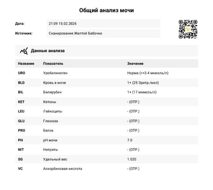 Сейчас по Вашему анализу мочи нет признаков активного инфекционного процесса: лейкоциты и нитриты отсутствуют, белка нет, удельный вес и pH в пределах нормы. Эритроциты (BLD 1+) действительно выявлены, но без лейкоцитурии и бактериурии это не характерно для бактериального цистита. Повышение билирубина в моче - редкая находка, чаще всего связано с особенностями обмена или может быть транзиторным, но требует исключения заболеваний печени и желчевыводящих путей, особенно если есть сопутствующие жалобы (например, желтизна кожи, потемнение мочи, светлый кал, дискомфорт в правом подреберье). Если таких симптомов нет, то разовое повышение билирубина может быть незначимым, но стоит обсудить это с терапевтом.