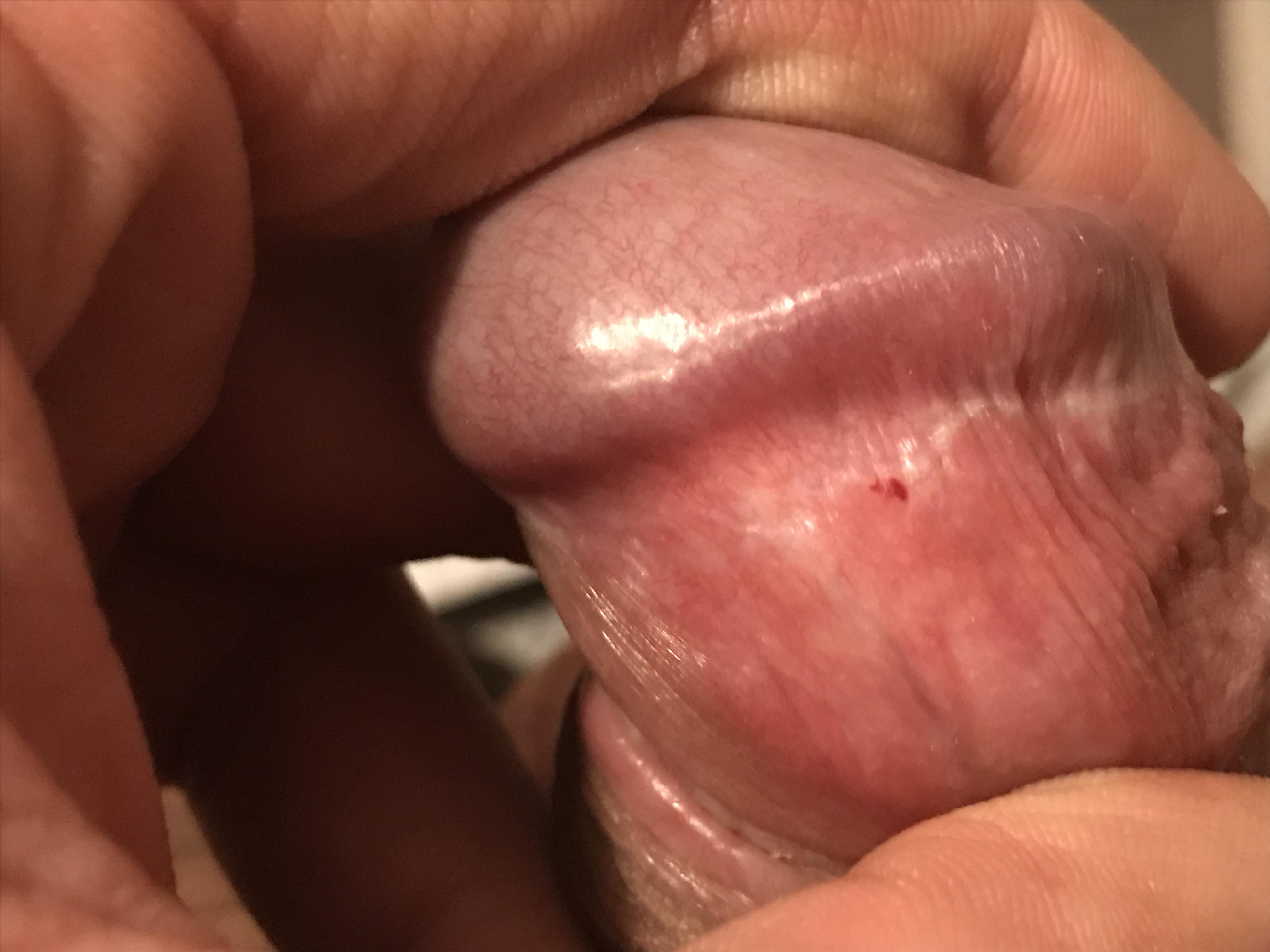 Здравствуйте! Недавно под головкой появилось небольшое красное пятнышко.Чем то похожее на кровоподтёк. Не страшно ли это? Заранее спасибо.