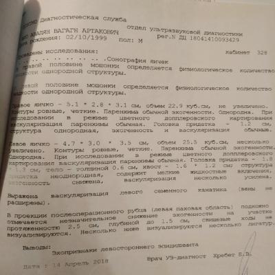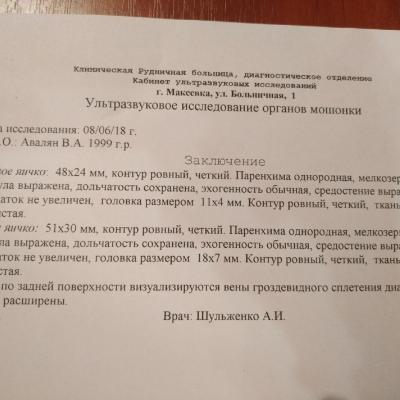 Год назад мне сделали операцию метод Мармара при варикоцеле. До сегодняшнего дня размер моего левого яичка не уменьшился в норму. Болей нет. Уплотнения есть, вены расширены, но, как мне сказали, незначительно. Всё указано в УЗИ.