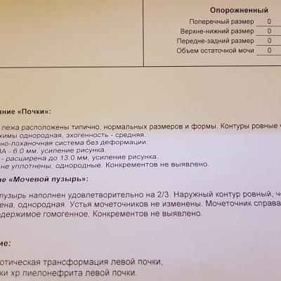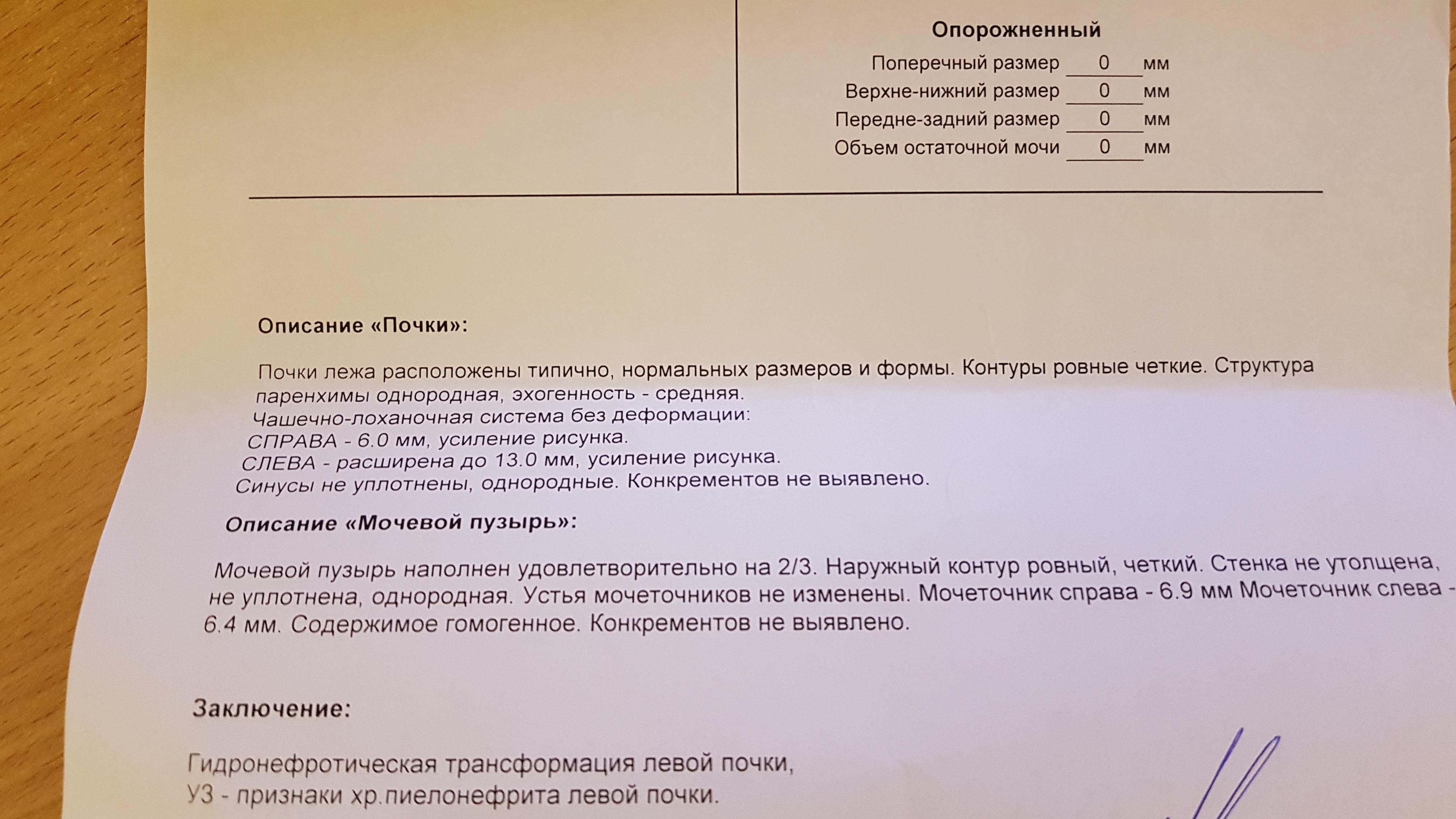 Добрый вечер! Недавно у меня заболела поясница слева. Обратилась к терапевту. Она назначила общий анализ мочи и пропить милдокалм, мелоксикам. Анализ пришел в норме. Мне сказали, что это остеохондроз. Я решила сделать узи почек и мочевого пузыря. Вот заключение: гидронефротическая трансформация левой почки, уз-признаки хр. пиелонефрита левой почки. Скажите, пожалуйста, что то надо с этим делать? Спасибо!