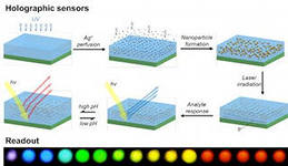 Ученые использовали гидрогель с высокой абсорбирующей способностью, насыщенный наночастицами серебра. Под влиянием шестисекундного лазерного импульса частицы серебра создают трехмерные голографические изображения заранее заданных форм внутри фотополимерной пленки, на которую нанесен гель. В результате контакта с различными субстанциями гидрогель изменяет свой объем, что приводит к изменению расположения наночастиц и, соответственно, трансформации цвета голограмм по всей шкале видимого спектра, что обеспечивает быструю визуальную интерпретацию результатов путем их соотнесения со шкалой цветовых градиентов.